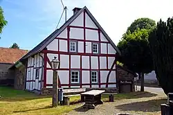 - Im Dorfzentrum stehen viele gut erhaltene Fachwerkhäuser. Das Dorfmuseum ist in einem von diesen Häusern untergebracht. Bevor die Ortsgemeinde das Haus Mitte der 1980er-Jahre kaufte, wohnte dort lange eine zehnköpfige Familie. Die Ausstellung soll präsentieren, wie die Menschen früher auf engstem Raum lebten. Vor dem Museum befindet sich ein Brunnen der mit Säulen aus Hoffelder Basalt gebaut wurde.