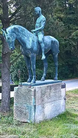 Auf dem Anwesen vor dem Hofgut am südöstlichen Eingang von der Kranichsteiner Straße her einsehbar steht die Statue Jüngling zu Pferde aus der Zeit um das Jahr 1900, geschaffen von dem Bildhauer Arthur Volkmann.