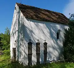 Der schlichte Rechteckbau mit Satteldach und Tonnengewölbe wurde in spätgotischer Zeit und Mitte des 18. Jahrhunderts umgestaltet.