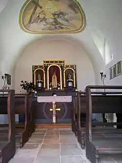 Von der Ausstattung sind die Deckenbilder der Trinität und der Immaculata von der Mitte des 18. Jahrhunderts erwähnenswert.