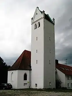 Die von Herzog Ernst gestiftete Votivkirche St. Maria und Georg wurde 1422 erbaut.[2] Anlass der Stiftung war der Sieg in der Schlacht bei Alling, gelegentlich auch Schlacht in Hoflach genannt, der in der Kirche ein Fresko gewidmet ist.[3]