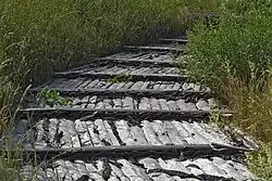 ![]() Der Hohbirker Kunstgraben westlich von Berthelsdorf. Gut erkennbar der Übergang von Schwarten- auf Betonplattenabdeckung. | ||
