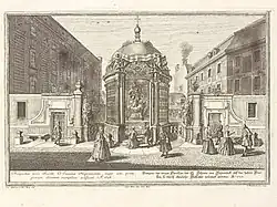 Gravur im Eckbereich der Hohen Brücke, Darstellung der Brücke vor 1857