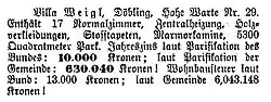 - ↑ Bericht über Realitätenverkehr in Wien. In: Neue Freie Presse, 14. November 1915, S. 52 (online bei ANNO).