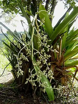 Die derben Laubblätter sind immer am Rande bewehrt (wie alle Vertreter der Bromelioideae), mit einer Stachelspitze, Saugschuppen sind hauptsächlich auf der Blattunterseite zu sehen.