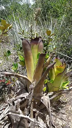 Hohenbergia igatuensisLeme: Sie wurde 2010 aus dem brasilianischen Bundesstaat Bahia erstbeschrieben.