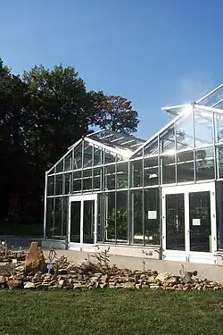 1789 entstand als Teil der Englischen Anlage das erste beheizte Gewächshaus in Hohenheim, das sogenannte Eiserne Haus, in dem Herzog Carl Eugen eine Ananas-Sammlung mit über 1000 verschiedenen Pflanzen hielt.[12] Im Jahr 1896 wurden neuere Gewächshäuser unter Oskar von Kirchner errichtet und die Kalt- und Warmhaussammlung seither weitergeführt. 2014 wurde das aktuelle Sammlungsgewächshaus eröffnet. Hier wird eine der größten Begonien-Sammlungen Deutschlands gehalten. Daneben gibt es Abteile mit tropischen Pflanzen Ost-Afrikas, einen Bereich mit Orchideen und Wasserpflanzen, einen Bereich mit insektivoren Pflanzen, ein Kakteenhaus, ein Abteil für tropische Nutzpflanzen und eines für afrikanische Wüstenpflanzen.