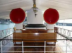 - ↑ Die Messing-Originalglocke ging nach der Ausmusterung 1962 vorübergehend verloren und wurde nach der Restaurierung bei der Indienststellung als Museumsschiff 1990 bis 2018 durch eine neue Schiffsglocke ersetzt.