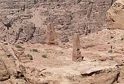 In der Nähe des Hohen Opferplatzes befindet sich eine Plattform mit zwei herausragenden Obelisken, die auf einer Ost-West-Achse ausgerichtet sind. Die Obelisken sind sieben Meter hoch und symbolisierten wahrscheinlich die nabatäischen Gottheiten Dushara und al-Uzza. Diese Ebene entstand, indem die Nabatäer das Gestein rund um die Obelisken abtrugen. So wurden schätzungsweise 3200 m³ Erde und Gestein bewegt.