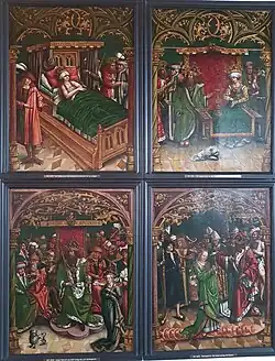 - ↑ Siehe hierzu: Theodor Rogge: Fassadenmalereien vom Schloß zu Füssen. In: Kunstgewerbeblatt. Jahrgang 1887, Heft 11, S. 213–214 (ub.uni-heidelberg.de).