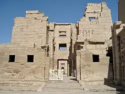 Das Hohe Tor befindet sich vor dem Totentempel des Ramses III. im Süden von Theben-West bei Medinet Habu. Es handelt sich um den auf der Ostseite dieses Tempels gelegenen Eingang mit einer Höhe von 19 Metern. Das Tor ist untypisch für die ägyptische Tempelarchitektur jener Zeit und könnte von asiatischen Vorbildern beeinflusst sein. Zwei Türme, die von Zinnen bekrönt werden, und das sich anschließende Mauerwerk bilden die Eingangspassage. Auf der Rückseite werden sie durch ein doppeltes Obergeschoss miteinander verbunden. Die Innenräume waren bewohnbar und dienten dem Herrscher für Kurzaufenthalte.