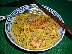 Hokkien-Nudeln (chinesisch 福建麵 / 福建面, Pinyin fújiànmiàn, Pe̍h-ōe-jī hok-kiàn mī – „Fujian-Nudeln“) sind dicke Eiernudeln aus der gleichnamigen chinesischen Provinz Fujian („Hokkien“ in der lokalen Min-Nan-Sprache) im Südosten von China. Sie werden aus Weizenmehl hergestellt und sind im Asialaden oft vorgekocht erhältlich.[1] Hokkien-Nudeln werden in vielen südostasiatischen Ländern (besonders Malaysia und Singapur) angeboten, wo sie von Einwanderern aus der Fujian eingeführt wurden. Man bezeichnet so auch gebratene Nudeln, die nach Hokkien-Art (Fujian-Art) zubereitet werden.