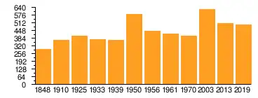 Jahr 1824 1848 1910 1925 1933 1939 1950 1956 1961 1970 2003 2013 2019