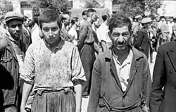 Nachdem sich die kollaborierende griechische Generalinspektion für Makedonien bei der deutschen Militärverwaltung beklagt hatte, dass im Gegensatz zur griechischen Bevölkerung Juden nicht zu Arbeits- und Sachleistungen herangezogen würden, mussten sich auf Anordnung des Militärbefehlshabers Saloniki Ägäis, General Curt von Krenzki, alle männlichen Juden im Alter von 18 bis 45 Jahren am 11. Juli 1942, einem Sabbat, auf dem Freiheitsplatz zur Musterung und Erfassung zur Zwangsarbeit versammeln.[12] Die tauglichen Juden wurden in malariaverseuchte Sümpfe geschickt oder mussten Schwerarbeit in Chrombergwerken leisten.[13][14] Eine Fluchtbewegung in die italienisch besetzte Zone Griechenlands setzte ein.[15] Die Zwangsarbeitspflicht wurde im Oktober 1942 wieder aufgehoben. Kriegsverwaltungsrat Max Merten von der Militärverwaltung Saloniki-Ägäis hatte der jüdischen Gemeinde eine Vereinbarung abgepresst, die die Juden von Zwangsarbeit gegen Zahlung von 2,5 Mrd. Drachmen und Überlassung des wertvollen, 300.000 Quadratmeter großen Areals des jüdischen Friedhofs (auf den die Stadtverwaltung seit langem ein Auge geworfen hatte) befreite.[16] Von den knapp 3.500 zur Zwangsarbeit Herangezogenen starben nach jüdischen Schätzungen 12 % also etwa 400 Menschen.[17]