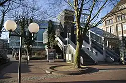 | Am südlichen Ende der Holstenstraße führt vom Holstenplatz eine Fußgängerbrücke zum Einkaufszentrum Holstentörn und dem dahinter liegenden Sophienhof. | |