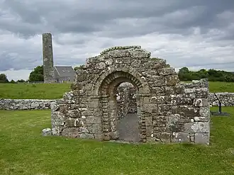 Auf Holy Island liegen ihre Ruinen und ein Rundturm, dessen Eingang etwa 3,0 m über dem Boden liegt. Er ist nach St. Cosgrath, einem Einsiedler benannt, der im 10. Jahrhundert hier wohnte. Die 25 Morgen große Insel ist noch Begräbnisstätte und wird von Pilgern aufgesucht. Der Rundturm wurde von Liam de Paor ausgegraben, seine Restaurierung dauerte von 1970 bis 1980. Trotzdem wurden keine Steine gefunden, die zur Kegelmütze des Turms gehören könnten. Die Legende besagt er sei unfertig geblieben, weil der Maurer von einer schönen blonden Hexe abgelenkt wurde.