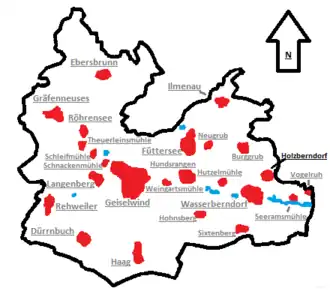 ![]() Lage von Holzberndorf (fett) im Geiselwinder Gemeindegebiet