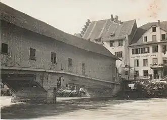 - ↑ J. Brunner: Der Bau von Brücken aus Holz in der Schweiz. Beilage zum Diskussionsbericht Nr. 5 der Eidgenössischen Materialprüfungsanstalt an der E.T.H. in Zürich: «S.I.A.-Normen für Holzbauten», Zürich 1925 (PDF; 12,7 MB), S. 4 mit Abbildungen 35 und 36 auf S. 24 und 25.