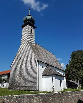 Die katholische Filialkirche St. Leonhard[2] ist ein spätgotischer Saalbau mit leicht eingezogenem Polygonalchor. Der barocke Ausbau stammt aus dem 17. Jahrhundert.