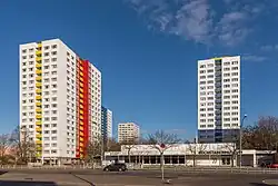 Im Zweiten Weltkrieg wurden die Gebäude der Straße weitestgehend zerstört. In der DDR-Zeit wurde ab 1969 die Nordseite mit 10- und 18-geschossigen Wohnhäusern bebaut.[3]