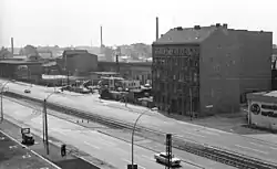 Bis 1970 verkehrte die Straßenbahn auf der Holzmarktstraße.