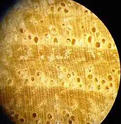 - Holzbiologie, ein Teilgebiet der Holzwissenschaft, das sich auf die Bildung, Struktur und Zusammensetzung von Holzgeweben konzentriert. Es umfasst Untersuchungen auf makroskopischer, mikroskopischer und molekularer Ebene. Dieses Teilgebiet umfasst auch die Holzanatomie, die die (makroskopische – mikroskopische) Identifizierung verschiedener Holzarten umfasst.[10]