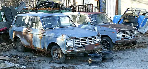 Die Hecktür war waagerecht in zwei Hälften geteilt, die untere konnte als verlängerte Ladefläche nach unten ausgeklappt werden und war über ein Scherengelenk gehalten, die obere mit Fenster wurde mit 2 Gasdruckfedern oben gehalten. Die Außenspiegel saßen vorne auf den Kotflügeln, wie es bei den meisten japanischen Fahrzeugen dieser Zeit üblich war.