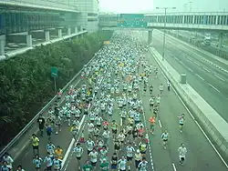 Der Hong Kong Marathon (chinesisch 香港馬拉松 / 香港马拉松, offizielle Bezeichnung Standard Chartered Hong Kong Marathon 渣打香港馬拉松 / 渣打香港马拉松, kurz 渣馬 / 渣马) ist ein, seit 1997 mit wechselnden Routen, jährlich stattfindender Marathon. Es ist die größte Outdoor-Sport-Veranstaltung in Hongkong.[6] Veranstalter ist die Hong Kong Association of Athletics Affiliates (HKAAA),[Fn. 1][7][8][9][10] Titelsponsor die Standard Chartered Bank. Zum Programm gehören mitunter ein Halbmarathon und ein 10-km-Lauf.