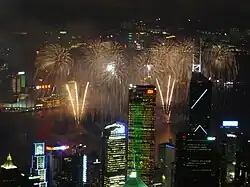 Das Bevölkerungswachstum und die geringe bebaubare Fläche Hongkongs führten zu großflächiger Landgewinnung durch Aufschüttung im Meer und zur Entstehung einer Skyline aus Wolkenkratzern. Hongkong ist heute weltweit die Stadt mit den meisten Wolkenkratzern. Nach der Errichtung mehrerer Planstädte in der zweiten Hälfte des 20. Jahrhunderts lebt die Hälfte der Einwohner Hongkongs in den New Territories.[17] Die am dichtesten besiedelten Gebiete sind die Halbinsel Kowloon und der Norden von Hong Kong Island, die durch die schmale Meerenge Victoria Harbour getrennt sind. Zu den New Territories gehören das ursprüngliche Hinterland nördlich von Kowloon, das die größte Fläche Hongkongs ausmacht, und die meisten der 263 Inseln Hongkongs. Die größte Insel Hongkongs ist Lantau Island, in deren Nähe sich auch der Hong Kong International Airport, auf der Insel Chek Lap Kok, befindet.