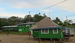 Die meisten markanten Gebäude befinden sich in der Mendana Avenue, der Hauptverkehrs- und Hauptgeschäftsstraße Honiaras. Hier befindet sich auch die belebte Markthalle CentralMarket. Das 1970 gegründete National Museum enthält unter anderem Sammlungen zu Tanz, Körpermalereien und traditionellen Waffen der Salomonen.[11] Die katholische Heilig-Kreuz-Kathedrale wurde 1975–78 erbaut.[12] Weitere markante Gebäude sind das Rathaus (City Council), die Markthalle, die anglikanische St.-Barnabas-Kathedrale und die achteckige Wesley United Church. Die anglikanische All Saints Church, die ursprüngliche Kathedrale von Honiara, erhielt ihre heutige Form 1971.[13] Vor ihr befindet sich unter einem Schutzdach eine große Trommel, mit der die Gläubigen zum Gottesdienst gerufen werden.