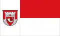 Beschreibung der Flagge:„Die Flagge ist rot-weiß quergestreift mit dem aufgelegten Wappen im weißen Liekteil, welches ein Drittel der Flagge ausmacht.“