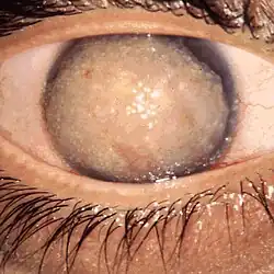 Insbesondere bei beidseitigen Hornhauttrübungen sollte immer an Hornhautdystrophien gedacht werden. Die Diagnose stützt sich auf das Alter bei Erkrankungsbeginn und das Aussehen bei der Hornhaut bei der Spaltlampenuntersuchung.[1]