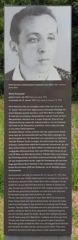 - Lydia Dollmann: Horst Kutscher, in: Die Todesopfer an der Berliner Mauer 1961–1989, Links, Berlin 2009, S. 126–128.