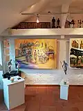 - Techniken: Öl, Grafik, Aquarell, Druck und Skulpturen
