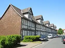 Im Laufe der Jahrhunderte war das Hospital Empfänger zahlreicher Stiftungen und Schenkungen,[7] und dies, gepaart mit wachsendem Bedarf an Platz, führte schließlich zum Bau vergleichsweise erheblicher Erweiterungen. Bereits in den Jahren 1593 bis 1596 wurde ein zweites Gebäude errichtet, um der Verpflichtung zur Sorge für die Armen der Stadt nachkommen zu können.[4] Im Jahre 1692 wurde dieser Bau durch den Neubau eines Altersversorgungsheims ersetzt, drei kleine nebeneinandergereihte, gleichförmige zweigeschossige Fachwerkhäuser mit Zwerchhäusern im Dachgeschoss sowohl zur Straße als auch zur Hofseite. 1737 entstand am Ostende ein im gleichen Stil gehaltener Verlängerungsbau mit rechtwinkliger Erweiterung nach Norden, und 1777 wurde im Westen ein weiteres Fachwerkhaus im gleichen Stil angebaut.[5] Bis zum Ende des Ersten Weltkriegs hatten die Bewohner des Altenheims neben freier Wohnung auch Anspruch auf Brennholz und etwas Bargeld. Zusätzlich konnte jeder ein Stück der Hospitalsgärten, gelegen zwischen der heutigen Breslauer Straße und dem Schloßberg und an der Fritzlarer Straße, selbst bewirtschaften.