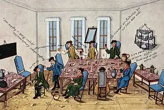 Wenn der Hausherr die Veranstaltung leitete, trug er als Zeichen seiner Würde einen Hausmantel im Gegensatz zur Straßenkleidung seiner Gäste. Als weiteres Abzeichen diente der Hausschlüssel, den er in der Hand hielt, oder auf dem Tisch vor sich liegen hatte, wie aus Darstellungen des 18. Jahrhunderts ersichtlich ist.