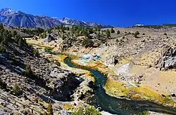 ![]() Hot Creek, mit aufsteigendem Dampf aus den heißen Quellen | ||