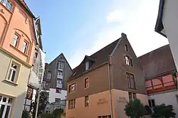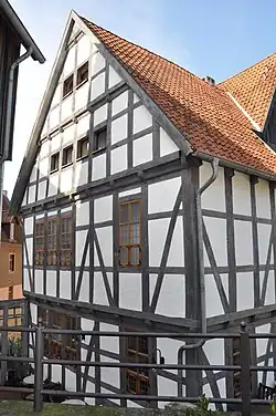 Der Gebäudekomplex stammt aus der zweiten Hälfte des 16. Jahrhunderts. Erbaut wurde er von Nickell Wulfert. Das Bauwerk besteht aus einem Vorderhaus und einem gleichzeitig errichteten etwas kleineren Hinterhaus. Beide Bauwerke haben steinerne Unterbauten und aufgesetzte und voneinander vollkommen getrennte Fachwerk-Speichergeschosse.