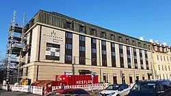 Die japanische Kajima Corporation erhielt den Auftrag für einen Neubau ohne Berücksichtigung des Barockgebäudes. Nach der Entscheidung zum Erhalt des Barockgebäudes, den der Denkmalpfleger Hans Nadler durchsetzen konnte, wurde der Neubau umgeplant und der Altbau integriert. Zwischen 1982 und 1985 fand der Um- und Neubau statt; es wurde zugleich mit der Wiedereröffnung der Dresdner Semperoper am 13. Februar 1985 eingeweiht und zum ersten Haus am Platze.[7] Ausdrückliches Ziel war es, den internationalen Standards der Touristenbranche auch in der DDR zu genügen. Eine weitere Funktion lag im Erwerb von Zahlungsmitteln in frei konvertierbaren Währungen. Das Hotel wurde zum „Devisenhotel“, in dem ausschließlich mit westlicher Währung gebucht werden konnte. Der Bau galt zudem als Maßnahme der innerstädtischen Belebung. Städtebaulich und stadthistorisch sollte dies der Aufwertung der Dresdner Neustadt Rechnung tragen. An Planung und Bau waren neben verschiedenen Volkseigenen Baukombinaten und einer schwedischen Baufirma auch die Abteilung N (Nachrichten), Abteilung 26 (Telefonüberwachung) und Abteilung VI der Bezirksverwaltung Dresden des MfS mit einbezogen.