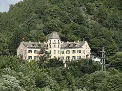 Das Haus mit dem markanten achteckigen Turm und zwei Flügeln ist V-förmig an die Topographie des Geländes angepasst. Das sechseckige Atrium mit Glasdach im Innern diente zur Belichtung der Erdgeschossräume, als die Räume noch nicht elektrisch beleuchtet wurden. Später wurde über dem Erdgeschoss eine Decke eingezogen.
