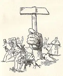 Im sechsten Kapitel verschafft sich Wilhelmine einen Überblick über das Ganze und erkennt in der Gestaltung des Haupt-Industrie-Gebäudes einen Stiefelknecht, im Neuen See eine Bassgeige und im Karpfenteich eine Fischfigur. Der Maler Richard Knötel hat Wilhelmines Eindrücke kongenial festgehalten.