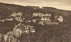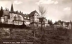 Das Hotel wurde ab 1898 nach Plänen des Wernigeroder Architekten Ernst Niewerth[1] als Luxushotel im harztypischen, landschaftlich geprägten Reformstil errichtet[2] und im Jahr 1900 eröffnet.[3] Bereits 1904 wurden die Kapazitäten um einen weiteren Wohnflügel erweitert. Das Hotel verfügte über eine eigene Konditorei, ein Wiener Restaurant mit Billardtischen, eine Zentralheizung, elektrische Beleuchtung und eine Tankstelle. Auf dem Gelände gab es zahlreiche Tennisplätze sowie eine Rodelbahn.[1]