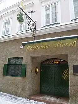 - ↑ Salzburger Nachrichten: Goldener Hirsch in der Salzburger Altstadt wird verkauft. Artikel vom 5. August 2016, abgerufen am 7. August 2016.