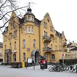 Die nachträglich 1911 errichtete rechte Gebäudeseite, welche die Symmetrie der Fassade zerstörte, besitzt fünf Fensterachsen und ebenfalls einen Risalit, dessen Schweifgiebel aber deutlich niedriger und schmaler ist, als auf der linken Seite.