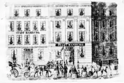 Um 1850 verfügte das damals von G. T. Pflüg geführte Hotel über 71 Gästezimmer und warb mit seinen Bade- und Duschgelegenheiten, einem Stall, der verschließbaren Remise und dem Garten hinter dem Haus.[4] Im Jahre 1901 wurde in einem Bericht zur 40-jährigen Wiederkehr des Überganges des Hotels in den Besitz der Familie Toepfer[5] in den Vaterstädtischen Blättern, der illustrierten Beilage der Lübeckischen Anzeigen, die Geschichte des Hauses unter der Nutzung interner und externer Quellen[6] beleuchtet. Die einstige Hamburger Herberge war zu jenem Zeitpunkt der älteste Gasthof Lübecks.[7]