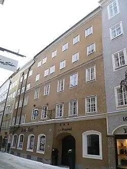 Das Hotel Blaue Gans befindet sich im ehemaligen Sprinzenbergerhaus in der Getreidegasse Nr. 43 von Salzburg.