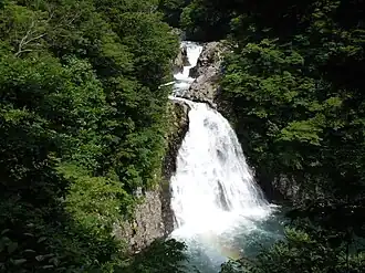 Der Hottai-Wasserfall (japanisch 法体の滝 Hottai-no-taki) liegt in Chōkai in Yurihonjō in der japanischen Präfektur Akita am Fluss Koyoshi, der von Südosten nach Nordwesten bis ins Japanische Meer fließt.[1] Er befindet sich am Fuß des Chōkai auf rund 450 m Höhe.[2] Der Wasserfall weist drei Fallstufen auf, wovon die erste eine Fallhöhe von 13 m, die zweite von 2,4 m und die dritte von 42 m hat. Die Breite liegt bei 3 bis 30 m. Die Hauptstufe fällt in ein kleines Wasserbecken in das von Westen mit dem Shimotamata ein weiterer Fluss mündet.[3]