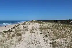 An der Atlantikküste befindet sich rund zwölf Kilometer vom Hauptort entfernt der Badeort Hourtin-Plage, der inmitten des Forêt des Landes („Heidewald“) liegt. Der Wald besteht vor allem aus Seekiefern. Neben einem Zugang zum Meer sind hier Gastronomiebetriebe, Surf-Schulen und ein großer Campingplatz mit Wasserpark angesiedelt. Der Küstenstreifen wird hier Côte d’Argent genannt („Silberküste“). Die Küste ist an dieser Stelle sehr reich an Muscheln und Austern. Der Abrieb und Reste der Schalen dieser Schalentiere vermengten sich im Laufe der Jahrtausende mit dem Sand. Infolgedessen glitzert bei einem bestimmten Lichteinfall in den Abendstunden der Sand in der Brandung wie Silberstaub.
