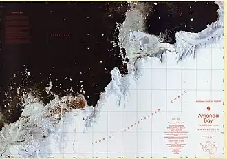![]() Satellitenaufnahme der Ingrid-Christensen-Küste mit der Amanda Bay (Mitte) | ||