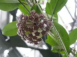 - ↑ a b c d e Sri Rahayu, Kartika Ning Tyas dan Hary Wawangningrum: Morphological variation of Hoya purpureofusca Hook.f. from Gu8nung Gede Pangrango National Park. In: Berita Biologi, Band 18, Nr. 2, 2019, doi:10.14203/beritabiologi.v18i2.3490 P-ISSN 0126-1754, E-ISSN 2337-8751, S. 215–223